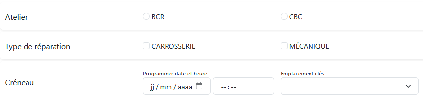 Cette section n'est visible que lorsque l'option "Mécanique" est sélectionnée dans "Type de réparation"