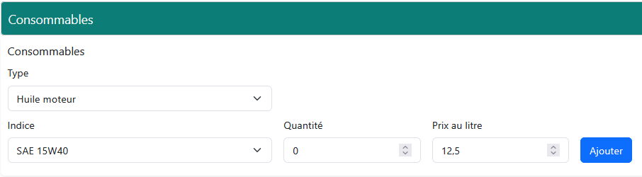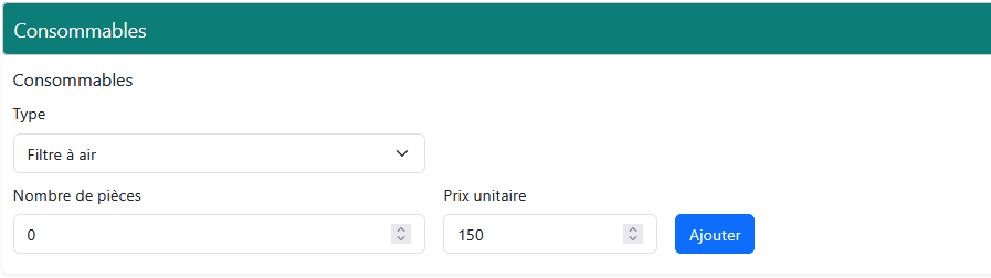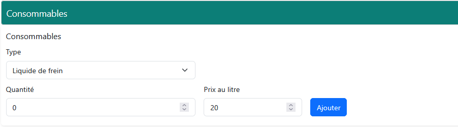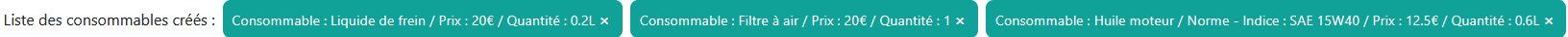 Il est tout à fait possible, à l'instar des pièces, d'ajouter plusieurs consommables différents :