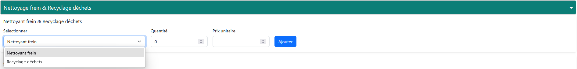 Vous pourrez ajouter ici les Nettoyants freins & Recyclage de déchets à facturer. Ces éléments seront ensuite modifiables dans les interfaces de suivi de mission