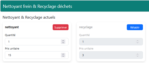 Modifier / Supprimer Nettoyant frein & Recyclage déchets