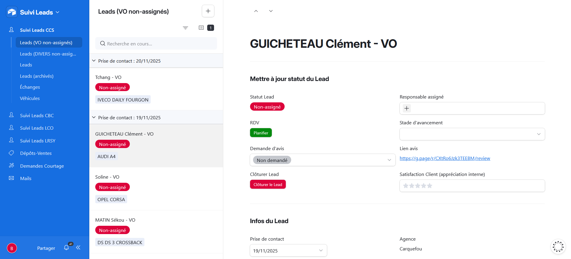 Ces leads et leurs suivis sont regroupés en 3 interfaces principales :